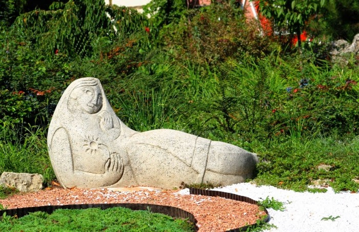 Однако, случайно я обнаружил в городе часть этой скульптурной композиции. Девушка лежит на клумбе перед домом №82 на бульваре Дечебала, но сейчас уже в полном одиночестве: