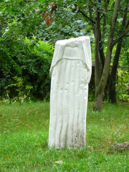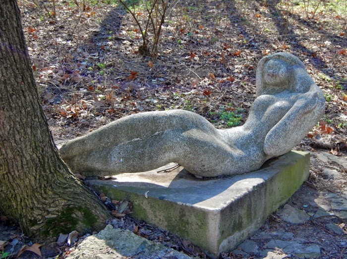 Следующей женской фигуре уже не повезло - вандалы отбили у неё нос.